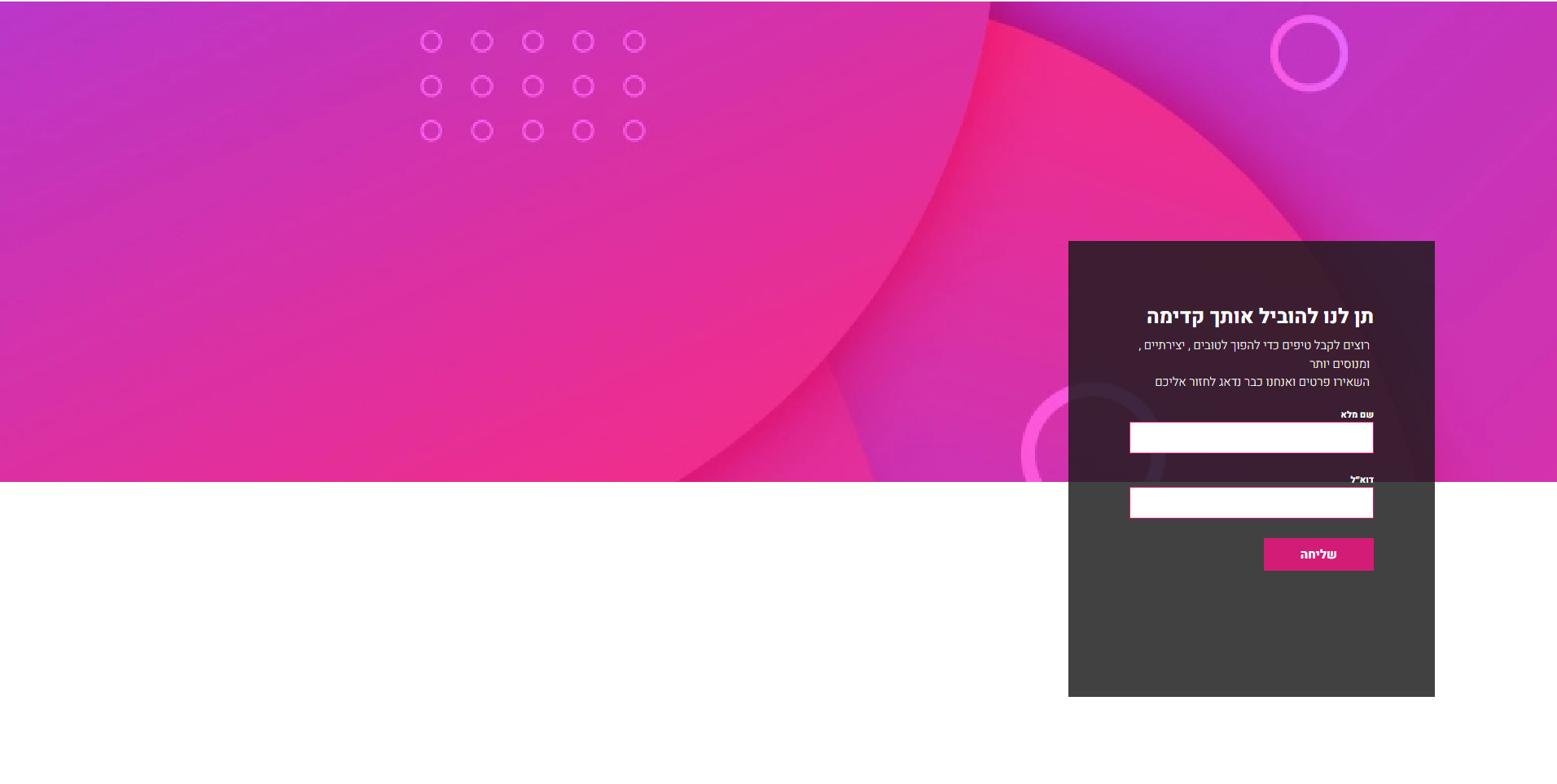השאירו פרטים לתיאום פגישה אישית עם נוי נעמן או התקשרו 0526720992